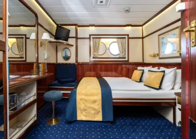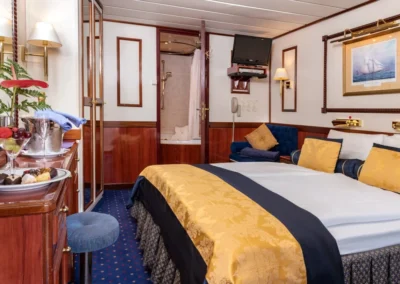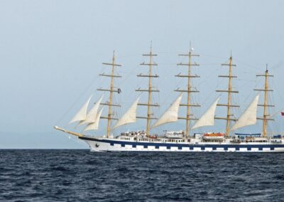 Star Flyer is a true sailing ship with polished teak, tall masts, and a friendly crew that loves to be under canvas. Cabins are smartly designed and air-conditioned, public spaces are relaxed, and the top deck is where you will probably spend most of your time. It feels more like a private yacht than a cruise ship, which is exactly what you want in the Greek islands. (Capacity about 166 guests; four masts; classic clipper style.)