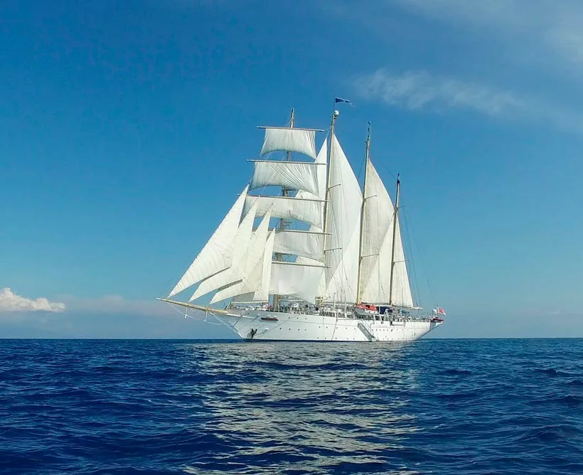 ⚓ Small ship, big moments. Star Flyer slides into pretty little harbors and quiet anchorages that the big boats pass by. The atmosphere is friendly, unhurried, and easy to love.